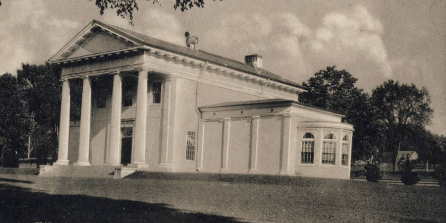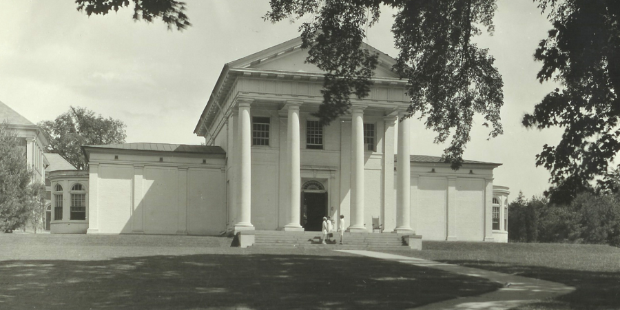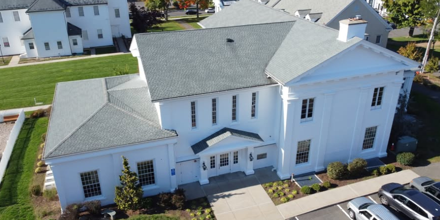 D. Newton Barney gave The Village Library to the people of Farmington, as a memorial to Sarah Brandegee Barney, his mother. A portrait of D. Newton Barney, by Rogert Brandegee, can be viewed in the main reading room along with Sarah Brandegee Barney and other notable Farmingtonians. The building was designed in the Greek revival style by Stephen Brainerd Lawrence in 1917. A plaque in memory of Mr. Lawrence is located in the library’s front hall.