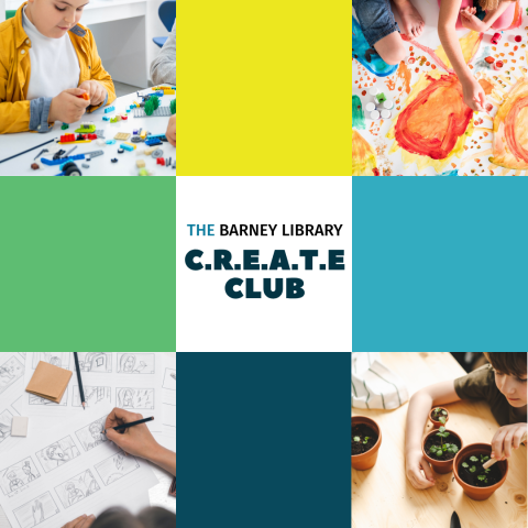 Kids in Grades K to 4 can join us at the Barney Library for a different activity each month! This is a time for Creativity, Reading, Engineering, Art, Technology, and Exploration! Will we build with LEGOs? Make our own graphic novel? Paint?