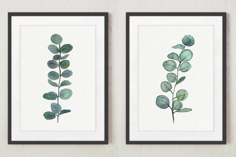 two matching paintings of plants